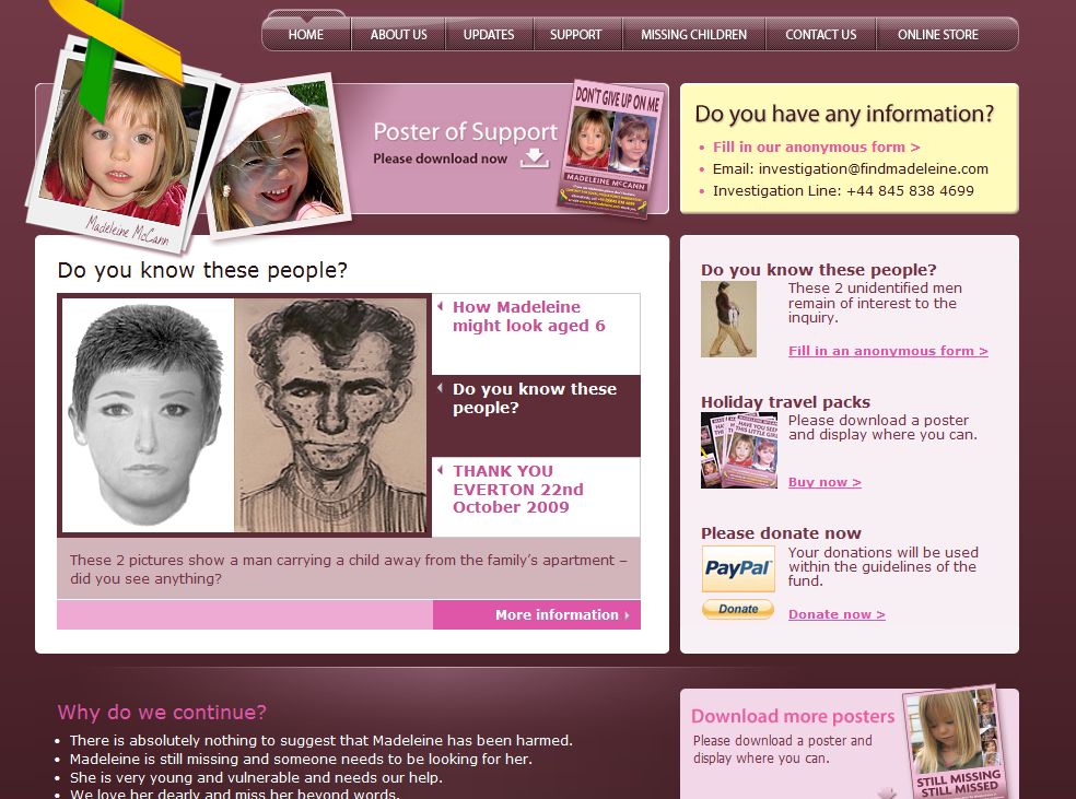 today the Find Madeleine website can be accessed in 3 Languages. English